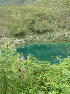 Vi kom från Österrike in i Italien via Plöckenpass. Och en nationalpark som heter Monte Croce Cornico. Här var det kallt. Vi såg en grön sjö o stannade.