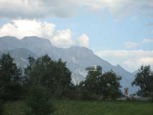 Det är så grönt. Och husen är underbart vackra. Vi brukar stanna och övernatta i Kufstein. Jag fick blåbär o grädde till efterrätt.