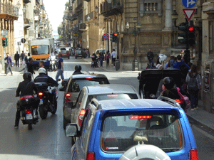 Jag tror inte vi kommit på tanken att ta bilen till Palermo. Det är lite trångt....vi tog ju en bussresa till sicilien ia pril 2015 istället.
