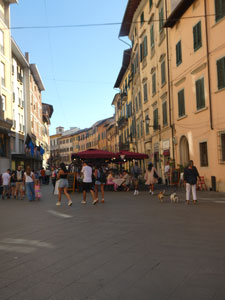 När du ska äta i Pisa så passa på runt tornet. Vi gick över floden o letade o hittade en restaurang, en pergola, men det var inte bra mat.