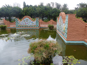 I dammen fanns näckrosor. Från molnet kan man nästa se skyddshelgonet hala