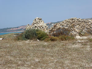 Det finns mycket nuragher här, det är befästningar från ca 1000-250 år före kristus. En del är nästan bara stenhögar men en del är bättre bevarade. I Tharros kan man se mycket. Om man hittar dit, det växer växter över väg skyltarna.