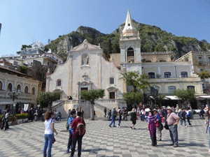 Vår bussresa tog oss till Taormina i april 2015. Det är nog det kändaste badstället på Sicilien.