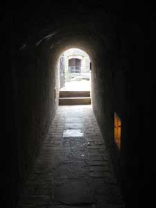 En 500 meter lång tunnel tar oss till avrättningsplatsen.